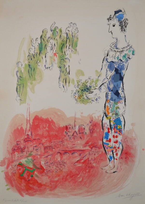 Marc Chagall was a Russian-French artist of Belarusian Jewish origin. An early modernist, he was associated with several major artistic styles and created works in a wide range of artistic formats, including painting, drawings, book illustrations, stained glass, stage sets, ceramics, tapestries and fine art prints. Chagall was one of the few artists to exhibit at the Louvre during his lifetime and he painted the ceiling of the Opéra Garnier in Paris. In 2017, Chagall’s work, Les Amoureux (The Lovers), sold for a staggering $28.5 million at Sotheby’s New York. Sotheby’s claimed the painting encapsulated Chagall’s two greatest passions; Bella and Paris.